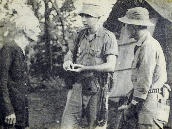 ABOVE: clipping from the Mosman Daily 6 September 1967. Captioned: “Vietnamese linguist Lance-Bomardier Vic Danko, of Newcastle, questions a hamlet chief in the Vietnamese village of Hoa Long during the cordon and Search operation “Mosman” in Phuoc Tuy Province at the weekend. Along with a Vietnamese sergeant, right, Lance-Bomardier Danko spoke with several villagers concerning possible Viet Cong presence in the area. Only a handful of small arms ammunition, some barbed wire and an unexploded mortar flare were found, indicating the Viet Cong had lost control of the village.”